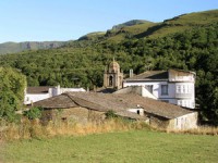 Si la niebla no lo impide ocultando el valle, ver amanecer desde O Cebreiro, junto al templo de Santa María la Real, es un privilegio que nos brinda el Camino y que no se puede rechazar. Hoy, por fin, nos sumergimos en la tierra de Santiago, la de la niebla y el orbillo; la de los castros celtas y de las minas ansiadas por los romanos; de infinidad de lomas, fragas de robles y soutos de castaños. La señalización oficial marca 151 kilómetros hasta Santiago, la nuestra 154,7. Iniciamos la vigésimo quinta etapa por encima del albergue de peregrinos. Abrigados por la vegetación de la montaña, ascendemos desde los 1296 metros hasta los 1370 (el punto más elevado del Camino Francés en Galicia) en las inmediaciones del Teso da Cruz y el monte Area. Desde ese punto bajamos al encuentro de una amplia pista forestal (Km 1,5) que conduce a la primera parroquia del día. En Galicia los municipios se denominan Concellos, a los cuales pertenecen distintas parroquias que engloban a su vez a distintas aldeas. Hacia el sur, a mano izquierda de la pista forestal, la vista se recrea en un sinfín de lomas tupidas de helechos, robles, castaños y pastizales que forman, entre otras, la sierra de O Courel. La pista forestal desemboca al pie de la LU-633, donde se encuentra la parroquia de Santo Estevo de Liñares, con iglesia prerrománica de una sola nave (Km 3,2).