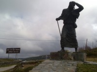 El primer alto, el de San Roque, no tarda en llegar. Al otro lado de la LU-633, a 1270 metros y ante una amplia panorámica, se alza la plástica escultura de un peregrino medieval que avanza contra el viento. Fue inmortalizado en bronce por el artista José María Acuña (Km 4,1). La senda sigue el itinerario de la LU-633 y desciende ligeramente hasta los 1.205 metros. Posteriormente, un falso llano nos aproxima hasta Hospital el segundo núcleo habitado de la jornada que lleva por sobrenombre "de la Condesa". El mojón jacobeo marca los 145,5. En este pueblo tendremos, probablemente, uno de los primeros contactos con las "rubias gallegas", las vacas de color canela apreciadas por su carne (Km 5,7).